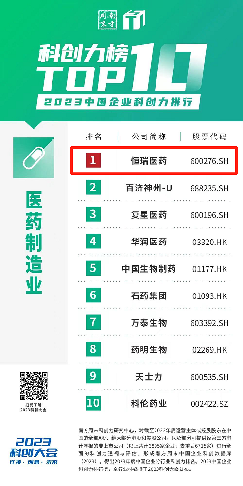 创新再获认可,AG百家乐医药蝉联“中国企业科创力排行”医药制造业榜首